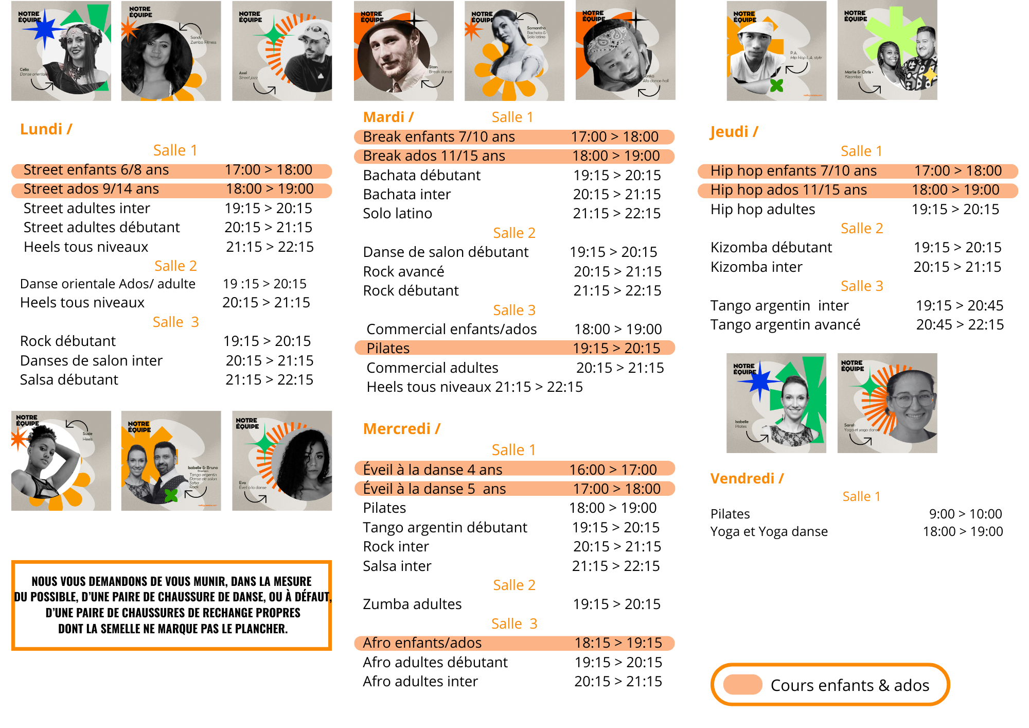 Nouveautés : Bachata, Heels, Yoga & yoga danse, danse orientale, Zumba, Commercial et de l’Afro Dancehall ! Sans oublier le Break dance, discipline nouvelle aux JO !