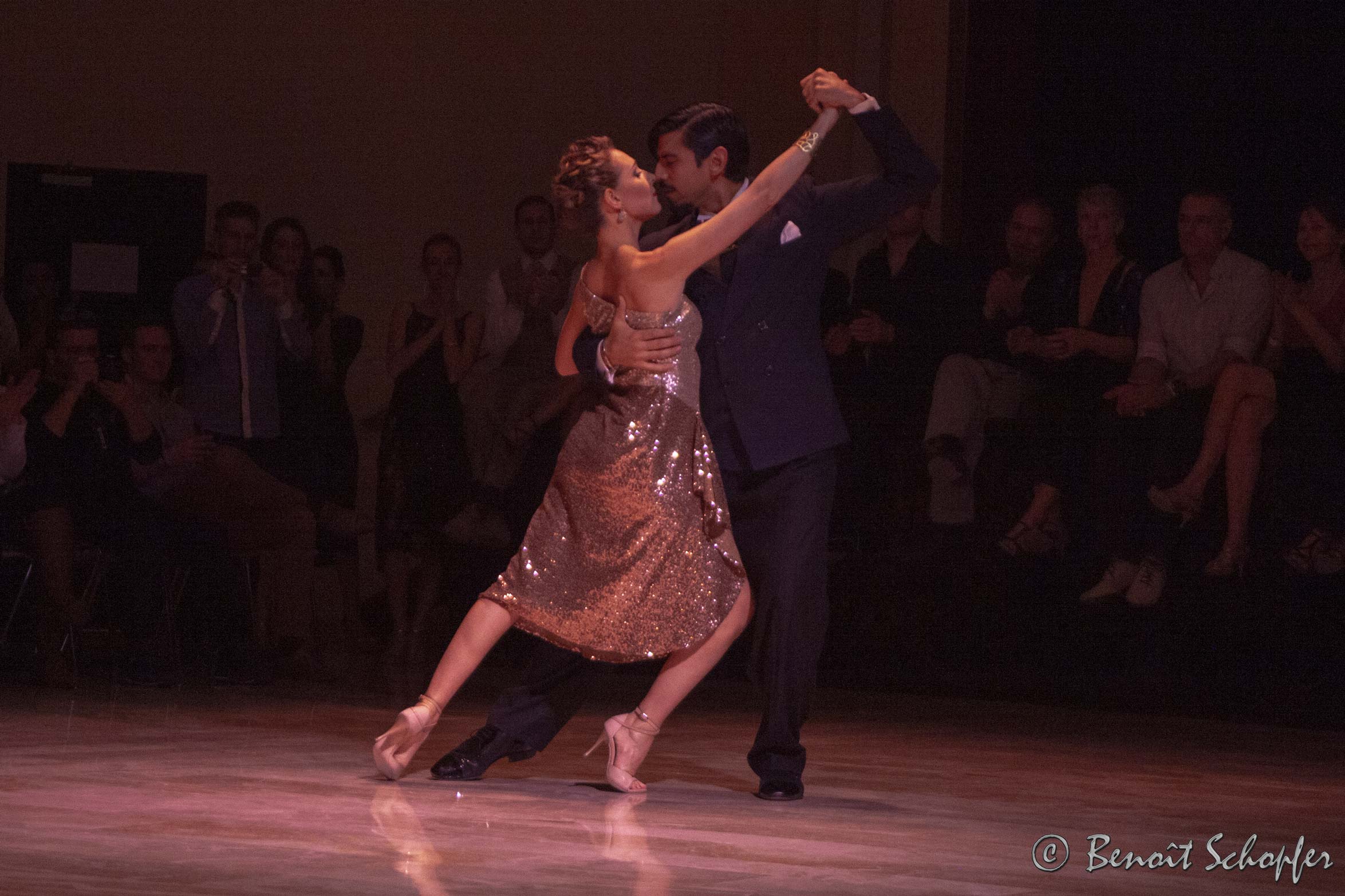 D’aucuns disent que pour danser un tango il faut être deux : pourtant deux ne suffisent pas. Dans cette communion, l’homme et la femme dansent accompagnés par la musique, attentifs au rythme et à la mélodie, et ce sont leurs sentiments qui la transforment en mouvement. Ils dansent avec l’autre et pour l’autre. Ils dansent avec les autres couples dont ils partagent l’énergie. Ils dansent avec le sol qui leur transmet les vibrations des autres danseurs ; ils lui rendent en caresses l’appui qu’il leur donne.